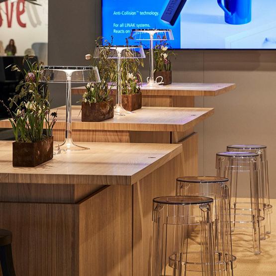 全球家具起落体系的引导品牌LINAK(力纳克),在超前领导家具厂商的思虑:若可起落的餐桌利用于办公场景下(如茶水间餐桌),会发生如何的化学效应?