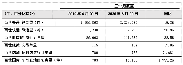 本季度,跟着国内疫情慢慢获得把持,各行业有序复工复产,线上花费连续增加。百世经由过程可连续的增加策略,侧重均衡收进增速和盈利才能的改良,聚焦提质增效,团体各营业快速苏醒,非美国通用管帐准则下(Non-GAAP)净利润增加明显。第二季度,团体毛利润为5.7亿元,同比增加9.6%;毛利率上升至6.8%,同比扩展0.9个百分点;Non-GAAP净利润为1124万元,同比增加73.3%;经调剂EBITDA(税息折旧及摊销前利润)为1.58亿元,同比上升6.4%。