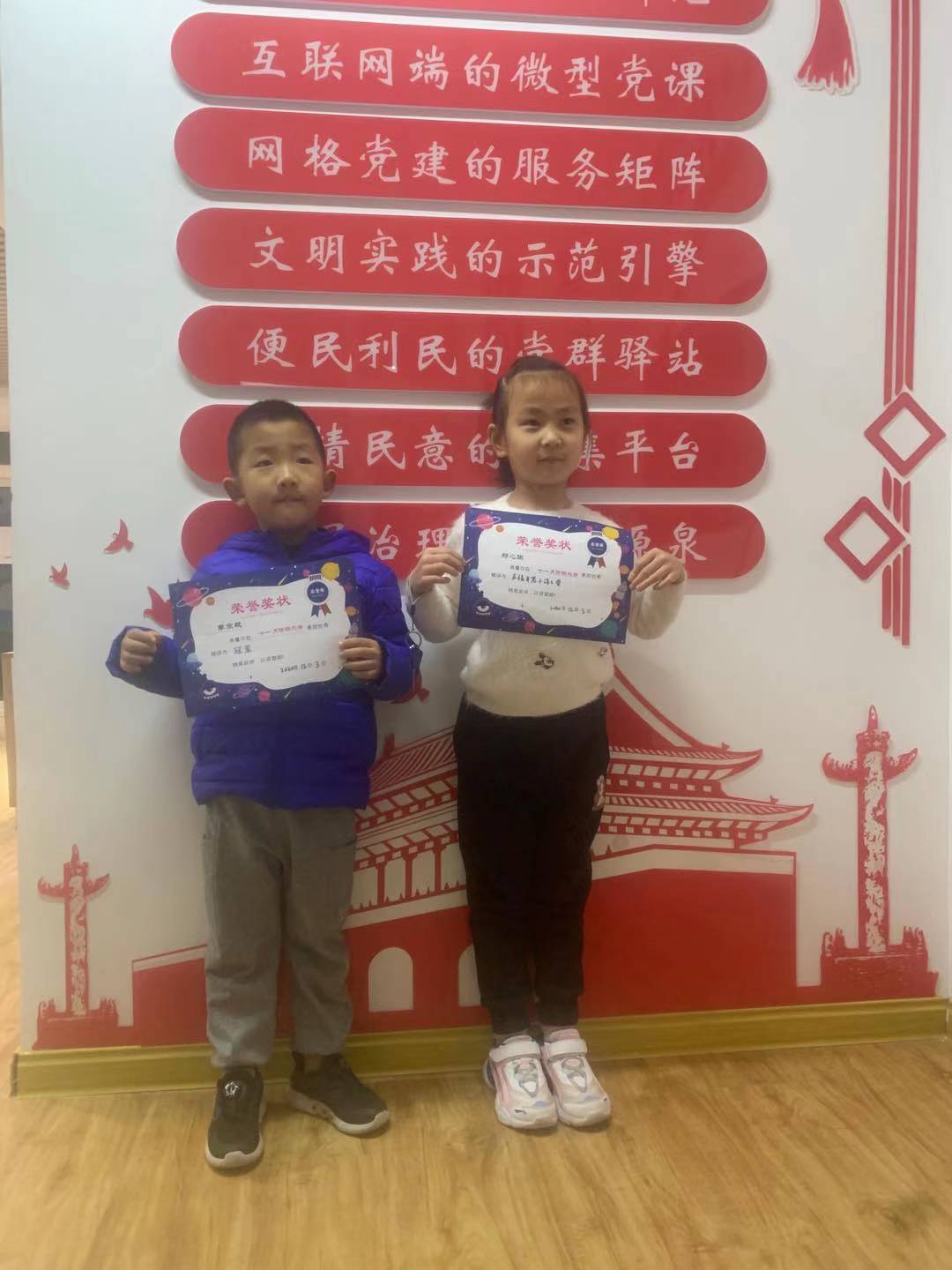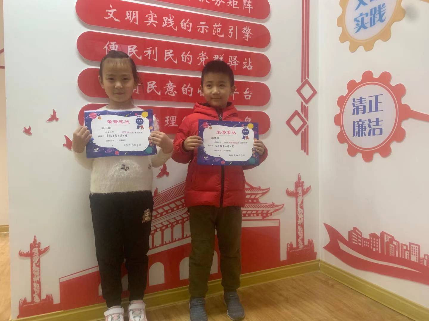本次运动采用线上投票的方法,截止到10号,累计投票1211人次,拜访量高达7951人次。最后评选出了冠军、亚军、季军各一名,分辨获得了主办方供给的优美奖品——***玩偶木笔筒。此外所有参赛的孩子都获得了奇特定制的奖状,前来领奖的家长和孩子们纷纭合影留念,纪念这可贵的一刻。